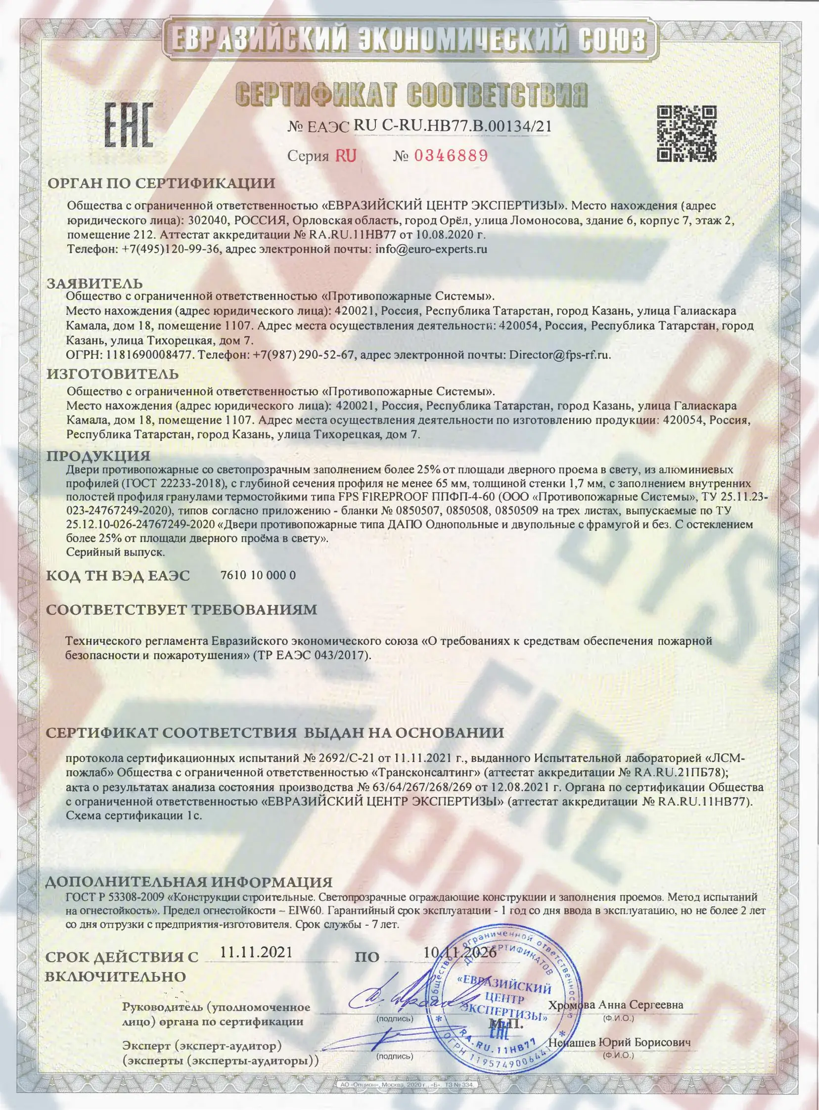 Сертификация – полное соответствие требованиям к противопожарным преградам 1-го типа.
